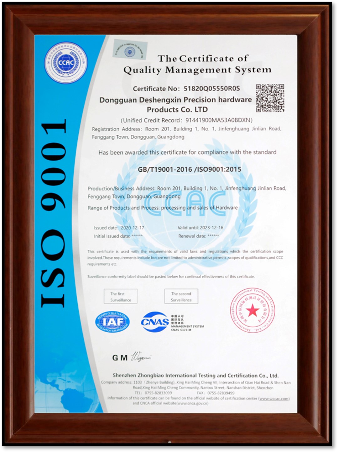 • 質量管理體系認證
